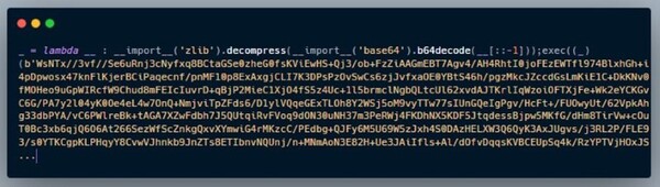 simple-mali-pkg-0.1.0のsetup.pyファイルで、当該パッケージの不審なファイル「mali.py」が実行されます。mali.pyファイルを調べると、暗号化された大量のコードを確認できます。このコードは、その真の意図を隠すために数十の多段階的な暗号化が使用されています。