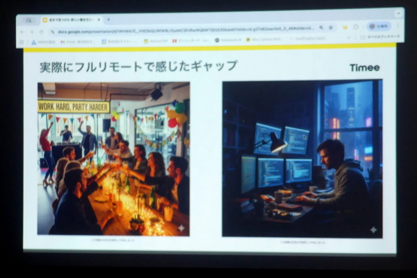 とはいえ、篠塚さんの岩手ワークは、あくまでフルリモートワークが可能という前提がある。しかし、スクラムマスターの篠塚さんからすると、フルリモートワークにはスキルや経験が必要で「新入社員に無理」。そのため、オンラインでも負荷を感じないコミュニケーションの場作りが重要。また、新入社員はまずオフライン・対面での業務を4~5年経験し、その業務体験をUターン・Iターンなどで持ち帰るパターンはオススメだという。