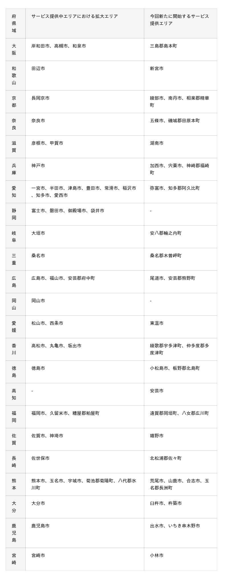 1. サービス提供拡大エリア及びお申し込み受付開始日