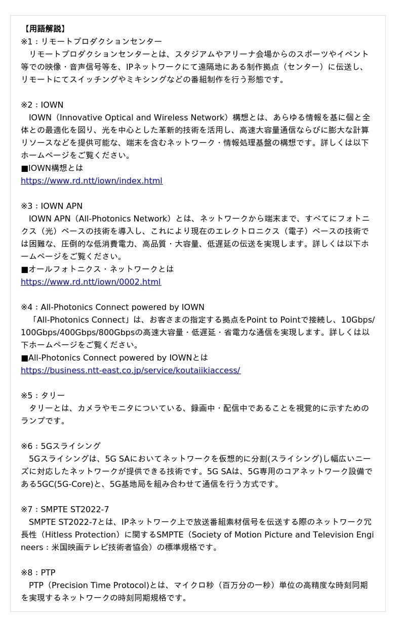 ~NTTグループのIOWN APNを活用し大規模スポーツイベントの地上波生放送を実施~