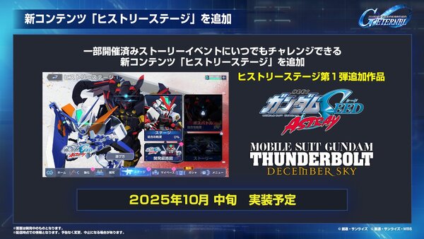 10月にはストーリーイベント「機動戦士ガンダム0083 STARDUST MEMORY」(第2弾)の開催と、メインステージに「機動戦士ガンダム 鉄血のオルフェンズ」(後半)を追加。