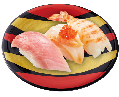 「贅沢人気ネタ三昧」では、天然車海老、つぶ貝二枚重ねいくらのせ、みなみ鮪中とろを味わえます。