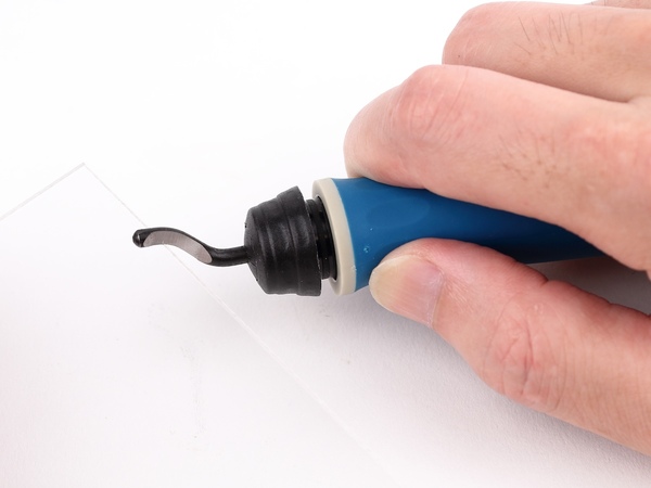 ただし、内側のバリ取りは得意ですが、外側は不得意。ブレードが回転してすぐに刃が逃げてしまうからです。頑張れば削れなくもないですが、普通のカッターを持ち出すほうが断然楽。曲線の場合は、あくまで内側のバリ取り用だと割り切った方がいいでしょう。