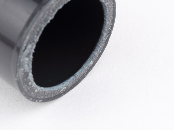 まずは内径20mmの塩ビパイプでチャレンジ。先ほど直線のバリ取りで習得したコツを応用しようとするも、だいぶ勝手が違い、ガタガタになってしまいます。内径が小さ目となるため、削りやすい角度にするのがかなり難しいためです。