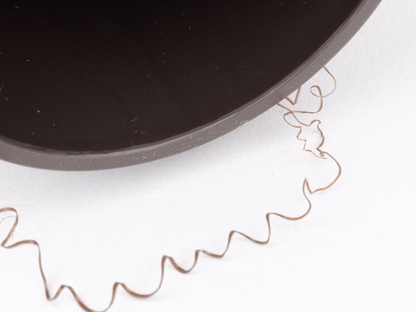 なお、バリ取りできるのはパイプに限らず、曲線もいけます。先の雨どい部品であれば、中央に段差のある楕円の方も比較的楽にバリ取りできます。