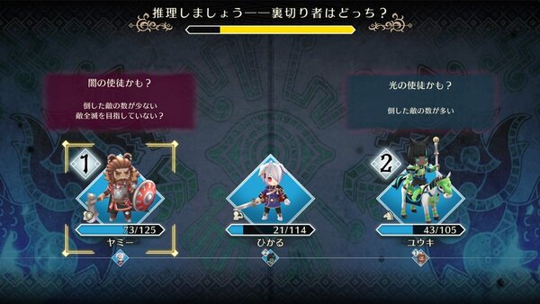 戦いの後に、誰が裏切り者の「闇の使徒」なのかを投票し、その結果によって以後の戦いが有利になるか、不利になるかが変わる。「光の使徒」が正しく相手を見抜けるか、「闇の使徒」が相手を欺けるかが、バトルの展開を握る鍵になる。