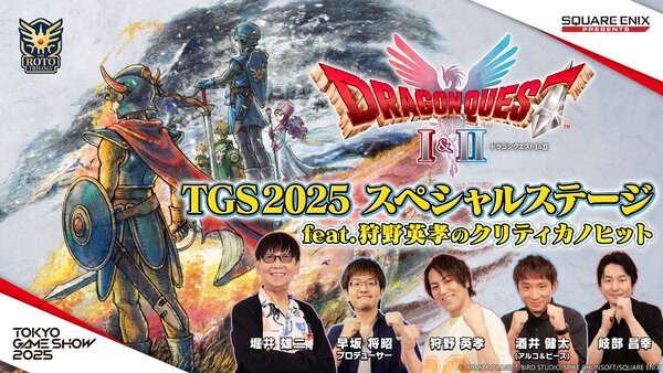 2025年9月27日15時30分より、「『ドラゴンクエストI&II』TGS2025スペシャルステージ feat. 狩野英孝のクリティカノヒット」を開催。クリティカノヒットメンバーと堀井雄二氏が、HD-2D版『ドラゴンクエストI&II』を実況プレイするので、お楽しみに。