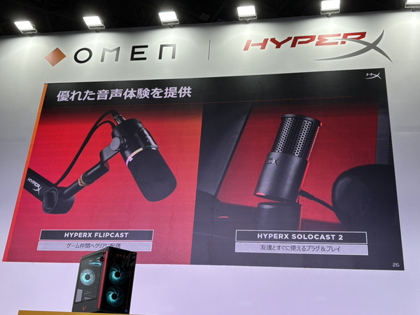 そのほか、HyperXブランドから最大250時間駆動のバッテリーを実現したフラッグシップヘッドセット「Cloud Alpha 2 Wireless」やUSB/XLR両対応の高音質マイク「ProCast」、プラグ&プレー対応で改良が施された「SoloCast 2」なども紹介。充実した周辺機器も展開されていることがアピールされていました。