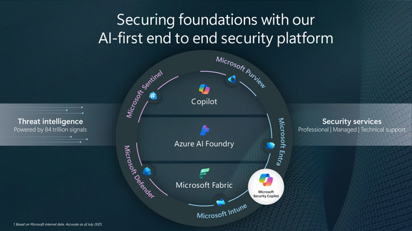 マイクロソフトでは現在、セキュリティプラットフォームを6つの製品(Microsoft Defender、Microsoft Entra、Microsoft Intune、Microsoft Purview、Microsoft Sentinel)で構成している。ここに、毎日84兆件に及ぶシグナルを検知する業界最大の脅威インテリジェンスと、生成AIを利用してセキュリティ業務の効率化と高度化を支援する「Microsoft Security Copilot」を提供し、セキュリティエンジニアがAIを活用して脅威分析できる環境を整えていることも示した。