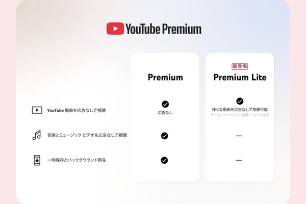 グーグルは9月26日、YouTubeの新しいサブスクリプションプラン「YouTube Premium Lite」の試験提供を日本で順次開始したと発表した。今後数週間以内に利用可能になる。料金は月額780円。