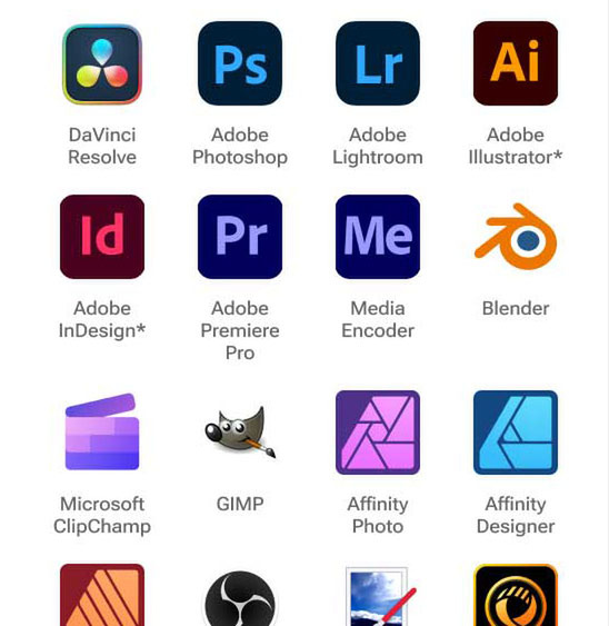 実はクリエイティブアプリの分野ではこの対応が進んでおり、すでにAdobeの「Photoshop」や「Lightroom」、「Premiere Pro」、Blackmagic Designの「DaVinci Resolve」など多くのユーザーが活用しているアプリケーションが使える。他にもGIMP、Blender、Affinity、OBSなど動画制作者や配信者、クリエーターなどが使う多くの主要メーカーとアプリが対応済みだ。