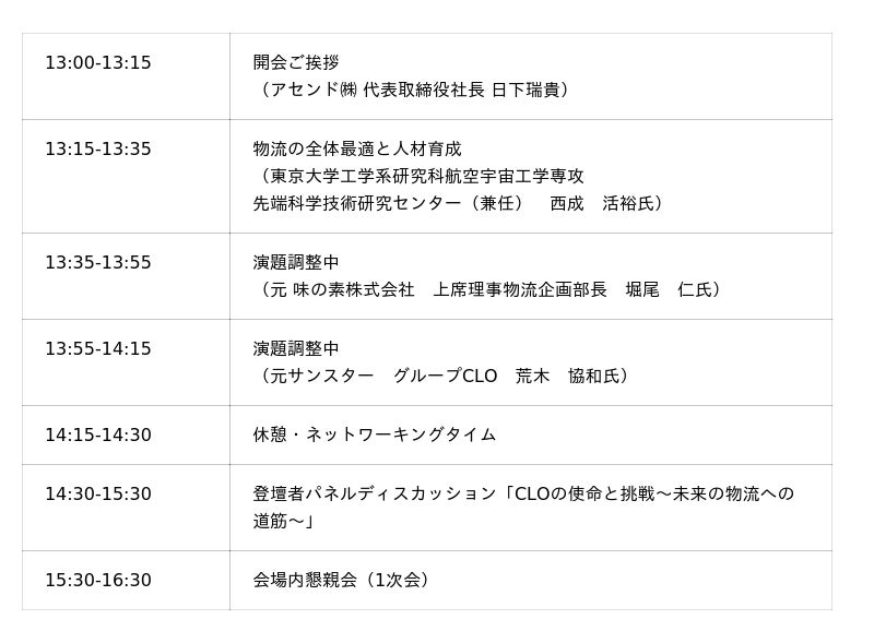 物流DXを推進するアセンド株式会社(本社:東京都新宿区、代表取締役:日下瑞貴、以下「当社」)は、この度、2回目となる大型イベント「ロジックス カンファレンス ー迫るCLO義務化 先駆者が語る『理論』と『実践』ー」を、2025年10月31日(金)に開催いたします。本カンファレンスでは、2026年4月に設置が義務化される、物流統括管理者/CLO(Chief Logistics Officer)をテーマに各領域の先駆者をお迎えし、理論と実践の両面から企業変革、その先にある業界の変革について深く議論いたします。
