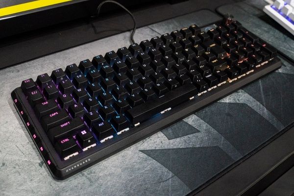 キーボードは、同社傘下の「Stream Deck」との融合を推進しており、キーボードのサイドにボタンを配置。「バーチャルStream Deck」アプリで機能を割り当てられる製品「VANGUARD PRO 96」などを展示。「VANGUARD PRO 96」は、スイッチにラピッドトリガーを採用。テンキー付きだが、横幅を抑えた設計になっている。