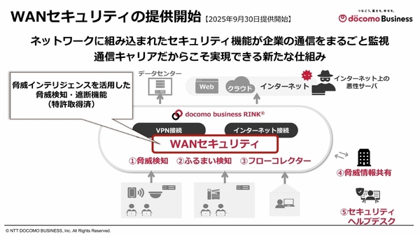 加えて、2023年より提供しているdocomo business RINKでは、新たに「WANセキュリティ」機能を2025年9月30日より提供開始する。