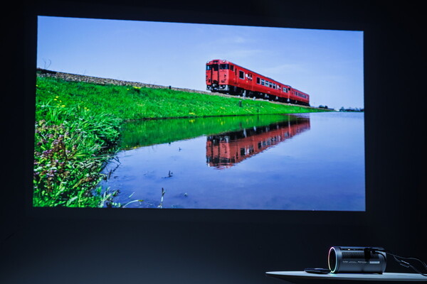 さて、次に「PicoPlay+」だが、画質については「PicoFlix」と同等と考えていい。コントラストが高く、緑や赤の原色も鮮やかに再現してくれる。明るさも450ISOルーメンと十分で、とても見やすい映像だ。