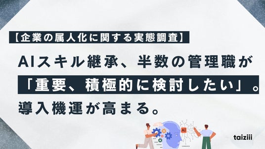 AIを活用した業務改善コンサルティングやシステム開発を提供する株式会社taiziii(本社:東京都渋谷区、代表取締役:加藤晃寿郎)は、一般企業の管理職200名を対象に、「企業の属人化・技術継承に関する実態調査」を実施しました。