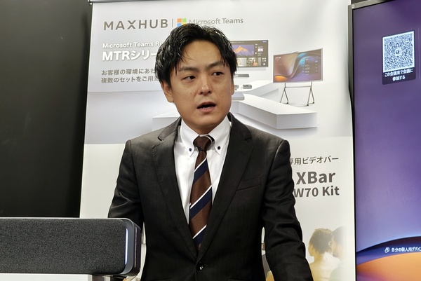 会議用デバイスは、中・大会議室向けの市場が伸びており、2023~2028年の平均成長率は17.6%になるという(出典:Frost&Sullivan)。ナイスモバイルのMTRシリーズの販売台数も昨年から190%という高い成長を遂げており、ハイブリッドワークにおけるセキュリティや効率性のニーズに応えているという。発表会に登壇したナイスモバイル 取締役 営業本部長 経営企画部 販売促進室 管掌 吉村健吾氏は「MTRは伸びる市場」と述べ、多様な働き方に対応する豊富なラインナップをアピールした。
