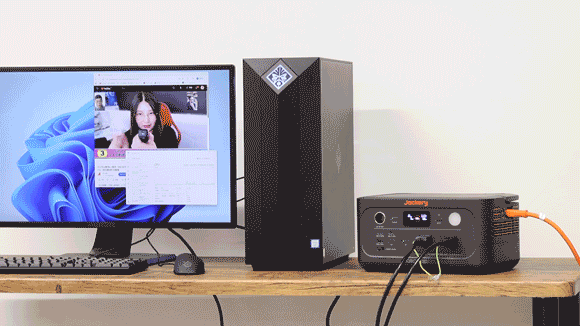 実際に編集部にあるデスクトップPCを使用して、Jackeryのポータブル電源と壁のコンセントをつないでいるオレンジ色のケーブルを抜くという実験をしてみたが、パソコンの動作には特に問題が生じなかった。ゲームなどをプレー中の場合や動画のエンコード作業中の安心感も高められるだろう。