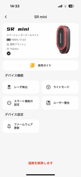 「SR mini」の使い方は非常にシンプル。充電して自転車に取り付け、電源を入れてサイクルコンピューターやスマホアプリとペアリングするだけ。テールライトの点灯パターンや警告音のオン/オフなどの細かい設定は、スマホアプリから行います。