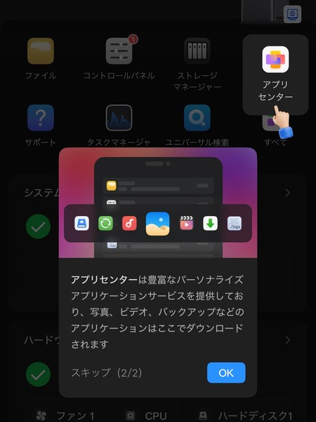 本体では専用にカスタマイズされたOSが動作しており、NASの機能はスマートフォンやタブレットなどと同様にアプリとして提供されます。機能別に用意されたアプリを使って、バックアップのスケジュール設定やデータの自動同期が可能となっていて、設定もラクラクです。自宅のあらゆるデバイスと連携しながら、個別のニーズに合わせてデータを管理できるのが特徴です。