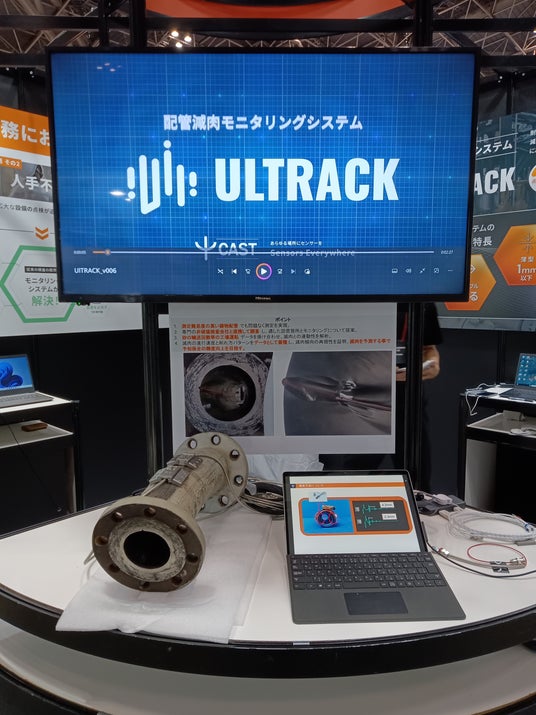 CASTは2019年9月に創業し、独自の耐熱・フレキシブル・薄型の特徴を有する配管減肉監視技術を活用した「ULTRACK(TM)」を開発・販売し、2025年6月には耐熱500℃の「超耐熱超音波センサー」をリリースしました。同システムは高温環境でも壊れず、工場配管やタンク等の厚み変化をモニタリングし、腐食などによる配管・タンクの減肉を検知するものです。検知したデータはネットワーク上に格納され、「いつでも・どこでも・誰でも」確認できます。常時かつ遠隔でモニタリングでき、危険な工場内での検査の負担軽減及び事故防止や設備寿命伸長の実現を可能にします。