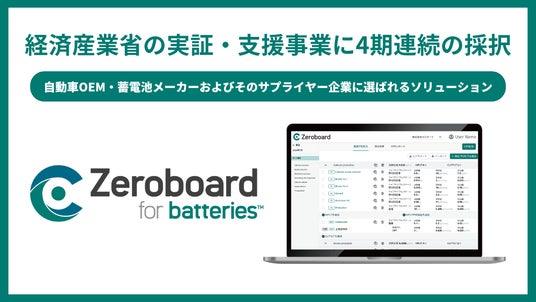企業のサステナビリティ経営を支援する株式会社ゼロボード(東京都港区、代表取締役:渡慶次道隆、以下 当社)は、自動車製造業ならびに蓄電池製造関連企業向けに開発した、「Zeroboard for batteries(ゼロボードフォーバッテリーズ、以下 本ソリューション)」が、経済産業省が補助金を交付する一般社団法人低炭素投資促進機構(GIO)の実証・支援事業(以下 本実証事業)に初回公募から4期連続4度目の採択をされたことをお知らせします。