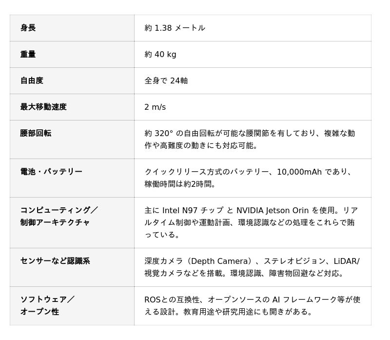 「PM01」は、Engine AI社の先端技術によって開発されたヒューマノイドロボットです。その主な特徴は以下の3点です。