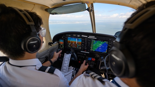 取材時には、ANAの訓練生が、2つのエンジンを搭載した航空機「双発機」を使ったIFR(計器飛行方式による飛行)の訓練を実施していました。この訓練はVFR(有視界飛行方式による飛行)ではないので、周りが見えず下だけ見える特殊なメガネを装着して操縦します。大型旅客機ではIFRでの運航が前提のため、重要な訓練です。