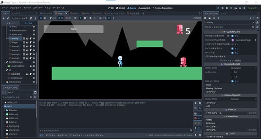 ゲーム制作に関する知識がまったくない人でも、アクションシューティングゲームを作成できる、新しいチュートリアルコースを公開しました。本チュートリアルでは、ACTION GAME MAKERやGodot Engineの仕組みだけではなく、レイヤーや変数といった基礎的なゲーム制作の知識から学習することができます。