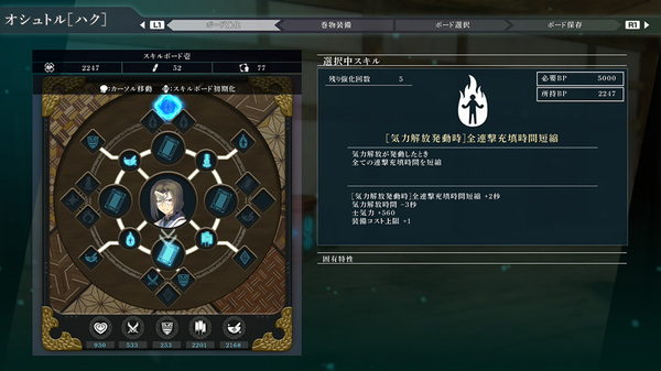 また、本作では「拠点」と呼ばれる「エンナカムイの屋敷」が存在。「拠点」を自由に歩いて仲間との交流を深めたり、ストーリーの進行やキャラクターの強化などができる。ゲーム中で入手できるポイントで、拠点としての機能を拡張していくことが可能だ。