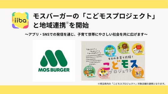 株式会社iiba(本社:東京都港区、代表取締役:逢澤 奈菜)が運営する子育て世帯向けおでかけマップアプリ「iiba」は、株式会社モスフードサービス(本社:東京都品川区、代表取締役社長:中村 栄輔)が推進する「こどモスプロジェクト」*1との地域情報連携を開始いたしました。iibaアプリやSNSでの広報活動を通じて、より多くのご家庭に「こどモスプロジェクト」の魅力をお届けしてまいります。