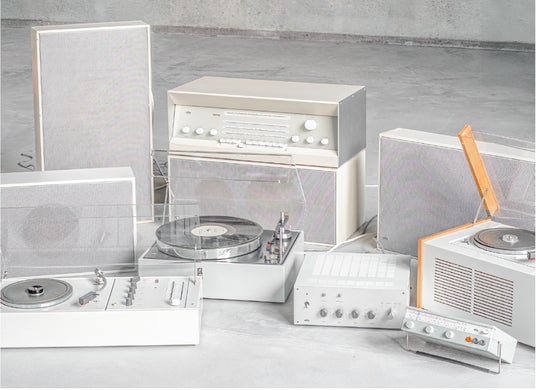 1955年、BRAUNにデザイン部門が設立されると、その年にラムスは入社。翌1956年には、後にBRAUNとラムスの代名詞となるSKシリーズの初代「SK4」を発表します。透明なアクリルと金属ボディに天然木を組み合わせたその構造は、家庭用オーディオの在り方に革命をもたらしました。