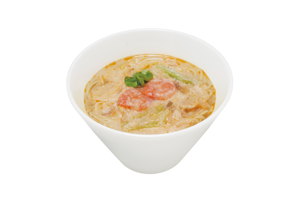 昨年好評だったという「豆乳野菜麺」スープの豆乳を増量。さらにコク深くまろやかな味わいに仕上げたといいます。台湾の定番料理「鹹豆漿(シェントウジャン)」をイメージしたコクのある豆乳スープに、えび・キャベツ・もやし・ザーサイがトッピングされ、麺と豆乳スープがよくからんでまろやかな味わいだそうです。