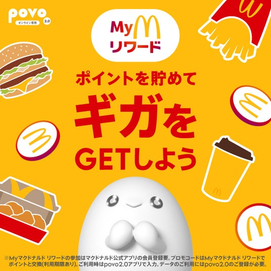 日本マクドナルドの「Myマクドナルド リワード」でpovo2.0のデータトッピングが交換可能に