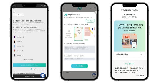 『AnyGift(エニーギフト)』は、相手の住所を知らなくてもLINEやメールで贈れる"eギフト機能"を、自社ECサイトに組み込み・導入ができるサービスです。