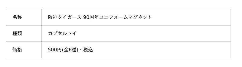 阪神タイガース創設90周年を記念した、ユニフォーム型マグネットがカプセルトイで新登場!