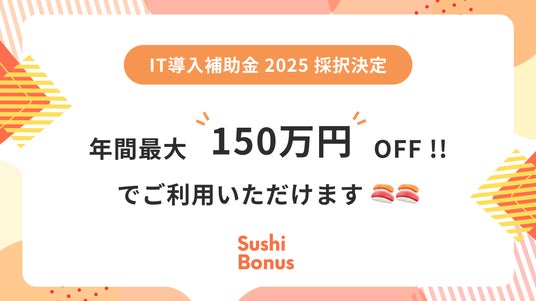 「Sushi Bonus」が「IT導入補助金2025」対象ツールに認定 ~最大150万円が補助対象に~