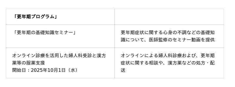 なお、同社では、2024年8月より既に「月経プログラム」が導入されており、新たに「更年期プログラム」の提供を開始することで、働く女性が直面する健康課題の改善について支援の幅を広げます。