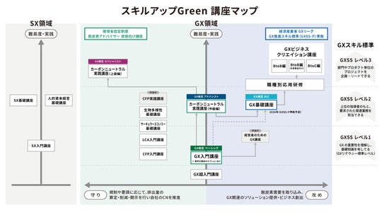 スキルアップNeXtは、「スキルアップGreen」でGXを体系的に学べる講座や、GX推進に必要な知識やスキルを測る「GX検定」で企業のGX推進をワンストップでサポートしています。