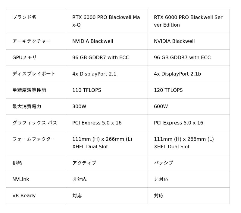 製品:NVIDIA RTX PRO 6000 Blackwell Max-Q Workstation Edition