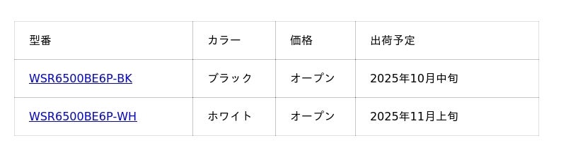 株式会社バッファロー(本社:東京都千代田区、代表取締役 社長執行役員CEO:牧 寛之)は、最新規格「Wi-Fi 7」に対応するデュアルバンドWi-Fiルータープレミアムモデル「WSR6500BE6P-BK」(ブラック)を2025年10月中旬、「WSR6500BE6P-WH」(ホワイト)を2025年11月上旬より順次出荷、販売いたします。