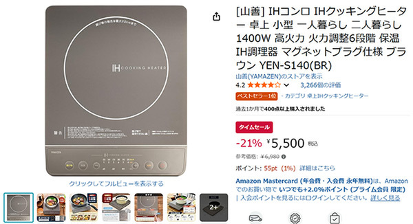 【Amazonタイムセール】薄型タイプの卓上IHコンロ「YEN-S140」が登場!