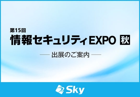Sky株式会社は、2025年10月22日(水)~10月24日(金)に幕張メッセで開催される、情報セキュリティに関する製品 / 技術 / サービスが一堂に会する専門展「第15回 情報セキュリティEXPO 秋」に出展いたします。