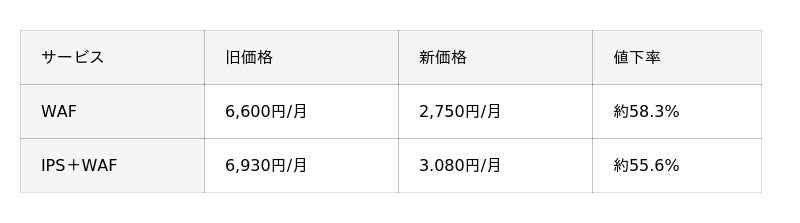 「WAFの月額料金が高い」→ これまで月額6,600円だったWAFオプションを2,750円に改定。