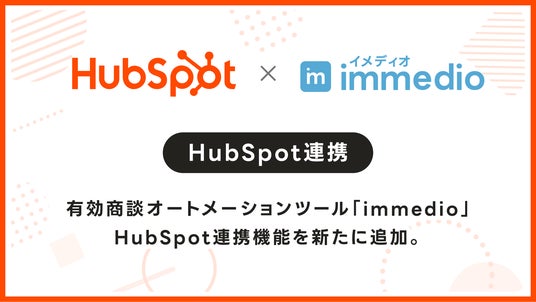 株式会社immedio(本社:東京都港区、代表取締役:浜田 英揮、以下 immedio)は、「決まる商談が増える」有効商談オートメーションツール「immedio」において、HubSpotとの連携機能を新たに追加しました。