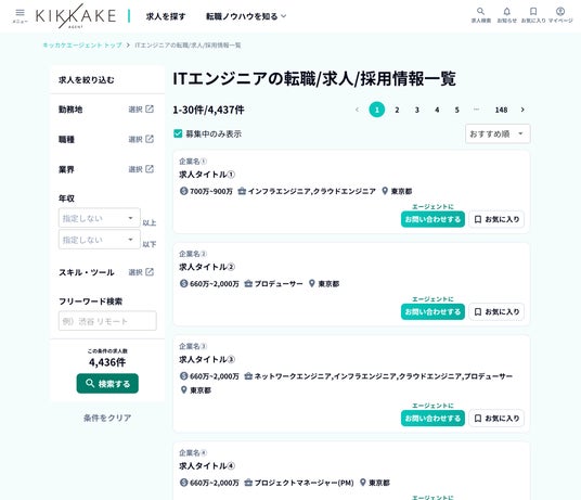 2020年12月1日よりITエンジニア向けの転職サービスを提供してきた「キッカケエージェント」がエンジニア特化の転職ポータルサイトを2025年9月30日(火)にリリースしたことをお知らせいたします。