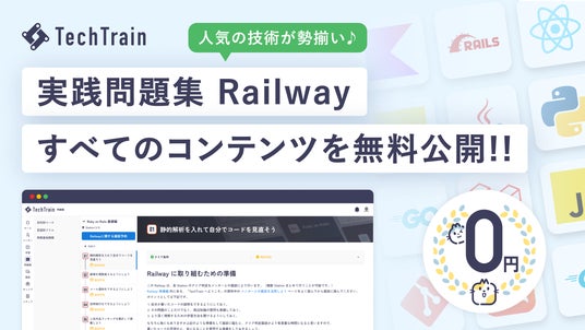 TechTrain、すべての実践問題集 Railway を無料公開!!人気のReact、Goをはじめ、話題のPython×生成AIもラインナップ。