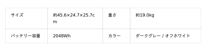 ※1 容量2000Wh帯のリン酸鉄リチウムイオン電池搭載モデルにおいて。ハンドル部分を除く体積計算に基づく。