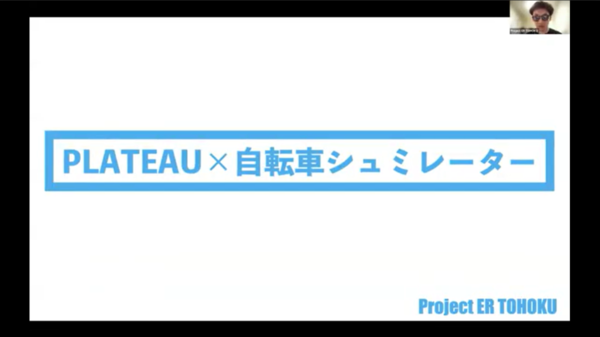 Project ER TOHOKUの稲葉氏は、PLATEAUを活用して開発した自転車交通安全シミュレーターを発表した。Project ER TOHOKUは、稲葉氏らがゲーム制作で東北を盛り上げようと活動しているチームで、「PLATEAU AWARD 2024」で奨励賞を受賞している。今回のLTでは、その奨励賞を受賞した「バイセコーでGO」を紹介した。