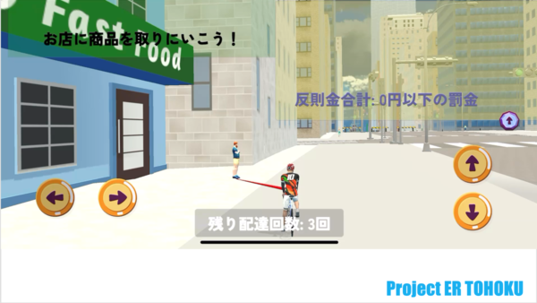 自転車講習会で使ったり、初めて自転車に乗る子ども向けのシミュレーターに活用したりできるのではないかと考えていたが、チーム全員がプログラミング初心者であることから、開発はうまく進まなかったそうだ。特に、仙台市のような広大な3D都市モデルにリアリティを持ったオブジェクトを配置するなどの作業が難しいという。しかし、「このままで終わりたくない」と奮起し、その後、簡易版としてフードデリバリーをテーマにしたiPhoneアプリをリリースしたという。